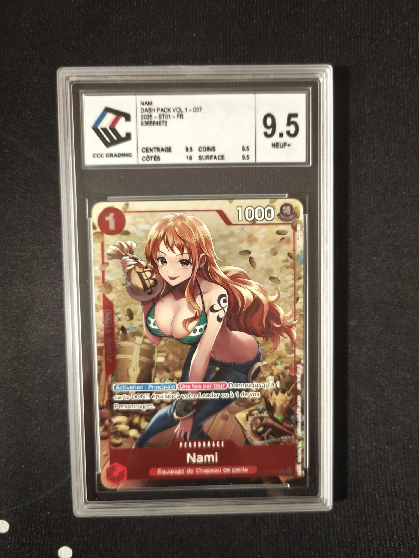 Découvrez cette superbe Nami (ST01-007) – Version 5 FR, certifiée par CCC Grading avec une excellente note de 9.5 Neuf+.