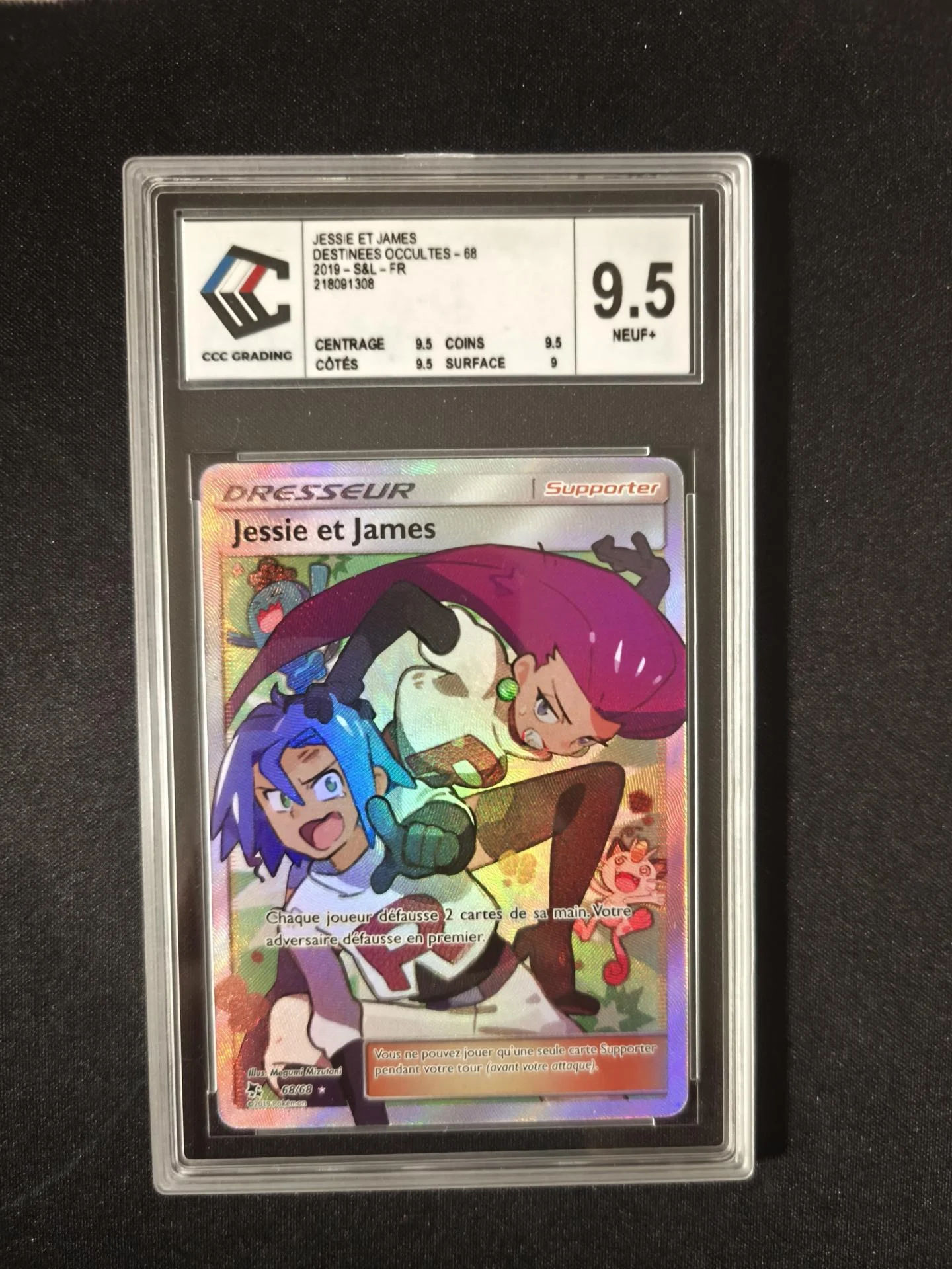 Avec son caractère emblématique et son état quasi parfait, ce Jessie et James CCC 9,5 constitue une pièce incontournable pour tout fan de la Team Rocket ou pour enrichir une collection Pokémon basée sur les Dresseurs mythiques.