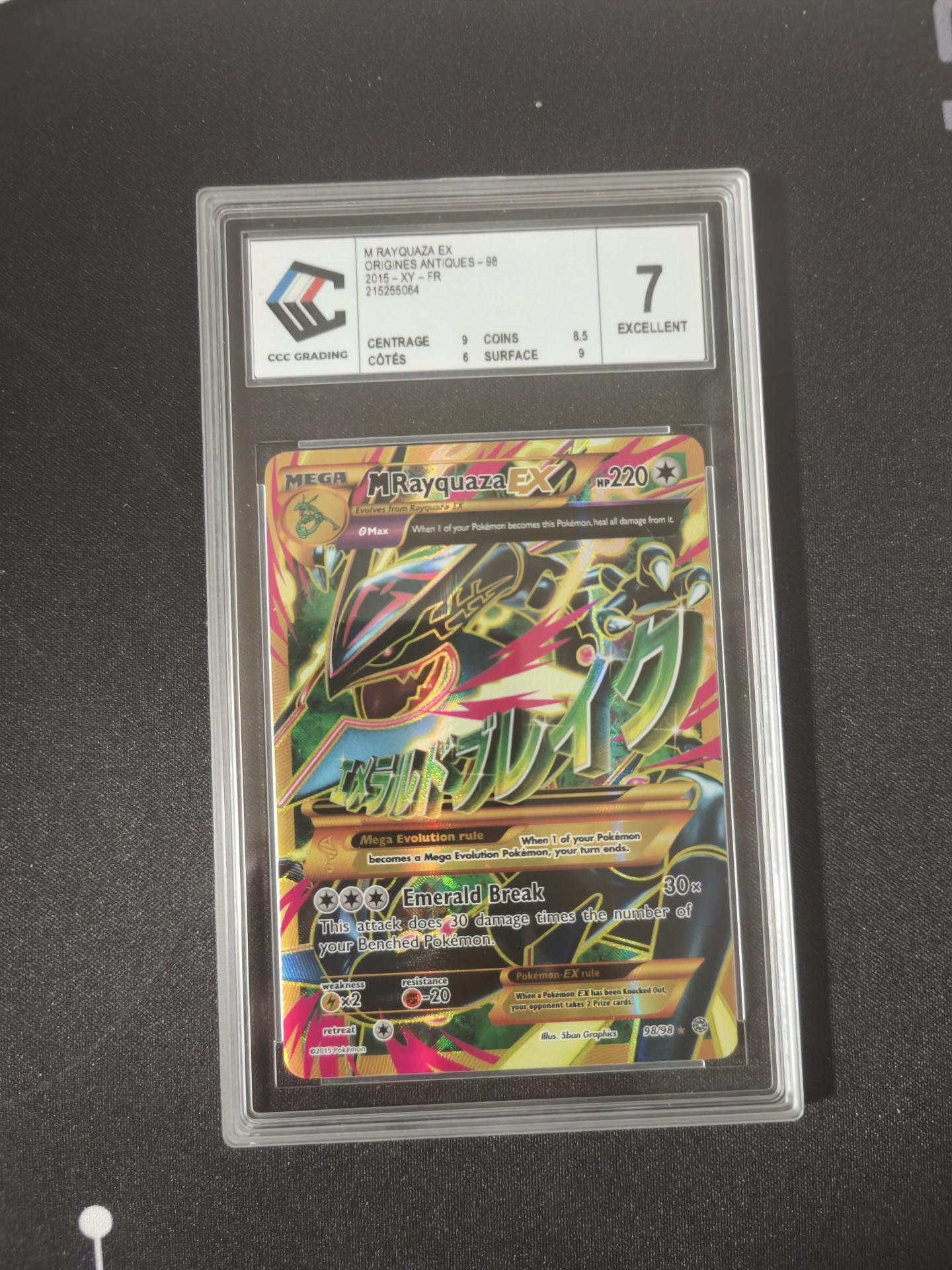 Ce M-Rayquaza EX CCC 7 Excellent représente une excellente opportunité d’obtenir une carte mythique à un prix accessible, tout en profitant de la sécurité et de la présentation d’un grading professionnel.